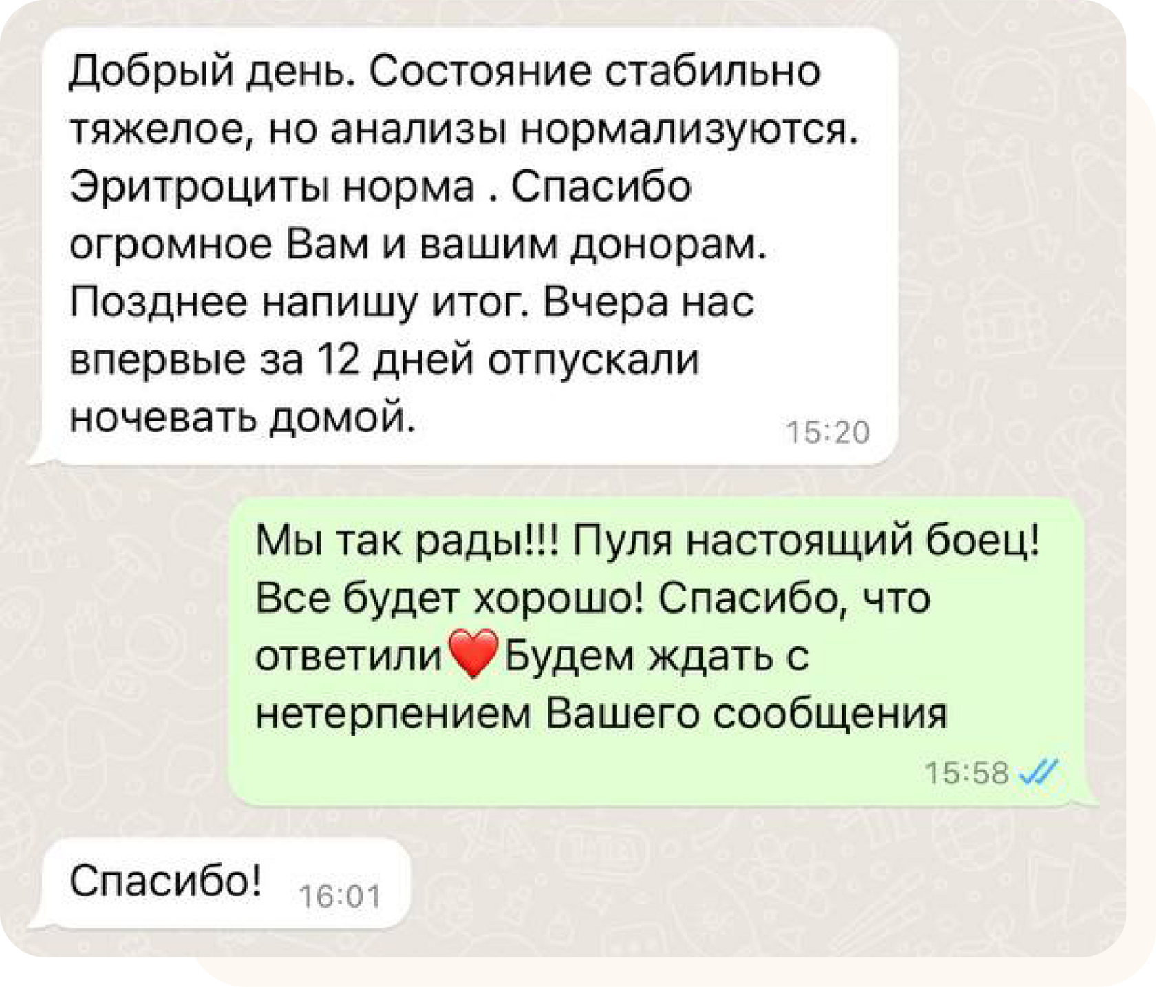 У нас есть кровь, когда у других нет. Вызовем для Вас экстренного донора.